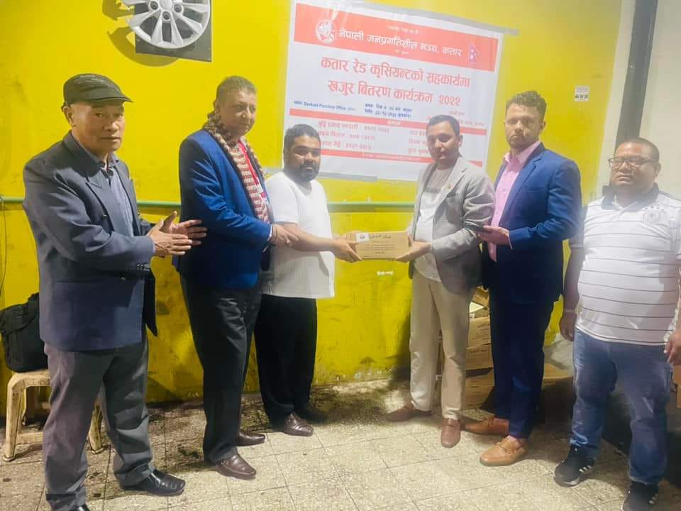 कतारमा स्थापित विभिन्न बैचारिक, प्रदेश समन्वय परिषदहरु, जिल्ला संघ–संस्थाहरु, जातीय संघ–संस्थाहरु, महिला समाजका अभियन्ताहरु लगायत अन्य सामाजिक संघ–संस्थाका पदाधिकारी लगायत व्यक्तिहरुलाई खजुर वितरण गरिएको हो ।