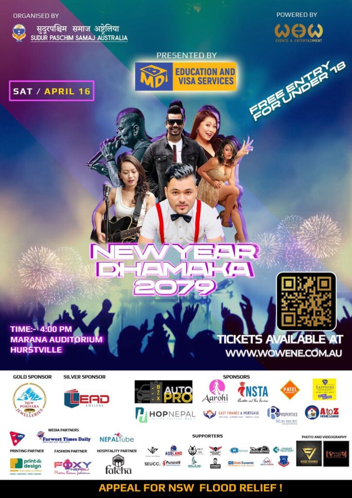 सिड्नी । नयाँ वर्ष २०७९ को अवसरमा सुदुरपश्चिम अस्ट्रेलिया समाजले विविध सांस्कृतिक तथा मनोरञ्जनात्मक कार्यक्रम गर्ने भएको छ । आज १६ तारिख स्थानीय समयअनुसार दिनको ४ बजे मराना अडिटोरीयम हस्र्टभिल ईन्टरटेनमेन्ट सेन्टरको सभाहलमा नेपाली चर्चित कलाकारहरुको साथमा कार्यक्रम हुन लागेको हो ।