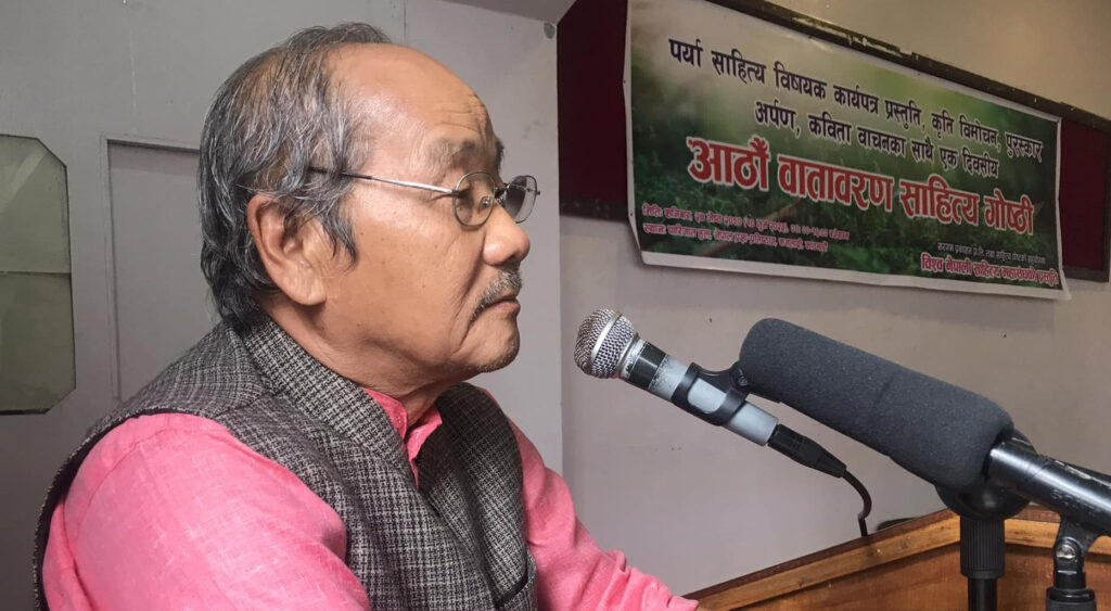 काठमाडौं । आठौं संस्करणको वातावरण साहित्य गोष्ठी सम्पन्न भएको छ । इको साहित्यलाई प्रवद्र्धन गर्ने उद्देश्यले सन् २०१६ देखि गरिँदै आएको वातावरण साहित्य गोष्ठी, पर्या साहित्य विषयक कार्यपत्र प्रस्तुति, कृति विमोचन, पुरस्कार वितरण, कविता वाचन तथा एक दिवसीय आठौं वातावरण साहित्य गोष्ठी शनिबार काठमाडौंमा सम्पन्न भएको हो ।