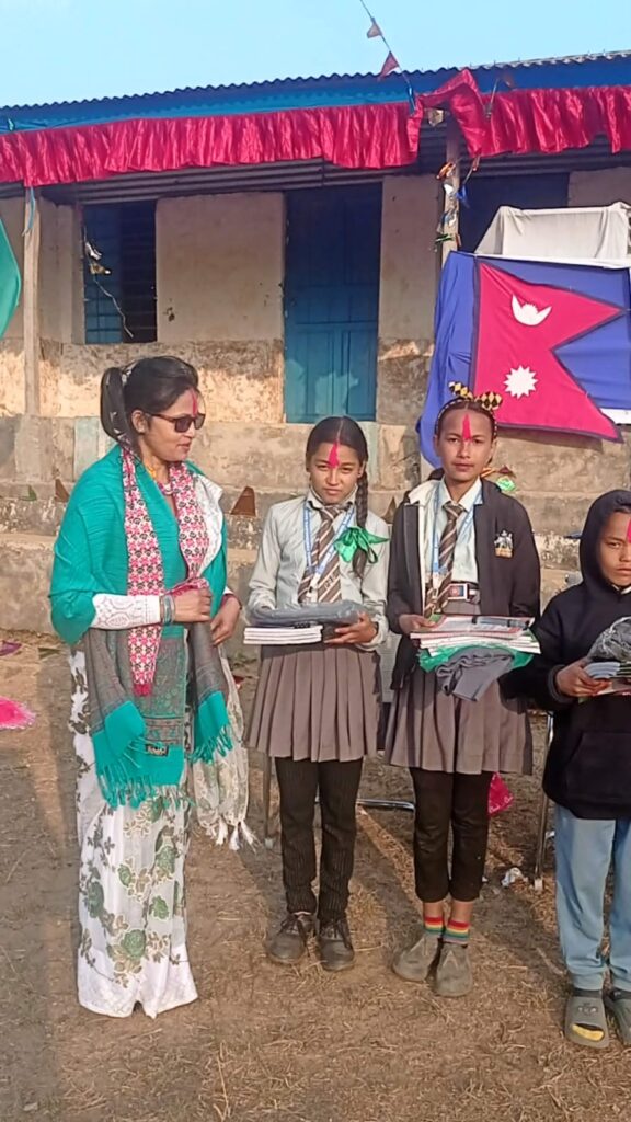 यसै क्रममा २०८२ सालमा विभिन्न मितिमा विभिन्न विद्यालयमा पुगेर उनले सहयोग वितरण गरेकी हुन्। श्री विश्वप्रेमी माध्यमिक विद्यालयमा अध्ययनरत बिपिला कटुवाल र निश्चल राई लाई छात्रवृत्ति प्रदान गरिएको छ भने श्री सगरमाथा माध्यमिक विद्यालयमा अध्ययनरत सूर्य कोइराला र मनिका राई लाई पनि छात्रवृत्ति वितरण गरिएको छ। त्यसैगरी श्री पञ्चकन्या आधारभूत विद्यालयमा अध्ययनरत पुनम बि.क., सिर्जना श्रेष्ठ, गणेश तामाङ, सबिता रम्तेल र सोधे श्रेष्ठ लाई न्यानो कपडासहित शैक्षिक सामग्री वितरण गरिएको छ।