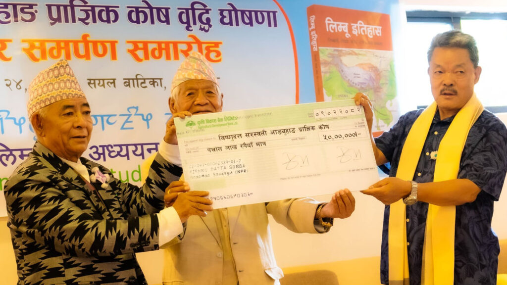 आफूहरुले किरात याक्थुङ चुम्लुङ अन्तर्गत लिम्बुवान अध्ययन केन्द्रले सञ्चालन गर्ने गरी “विष्णुदत्त–सरस्वती आङबुहाङ प्राज्ञिक पुरस्कार” र “विष्णुदत्त–सरस्वती आङबुहाङ अनुसन्धानवृत्ति“ प्रदान गर्न सुरुमा तीस लाख मूलकोष राखेकोमा सो रकममा बीस लाख थप गरी पचास लाख पुर्याएकोमा पुनः पचास लाख थप गरी यस वर्षबाट एक करोड पुर्याइएको जानकारी दिए । ‘यसरी आफ्नो समुदायको लागि प्राज्ञिक कोषमा रू. १ करोड पुर्याउन सकेकोमा मलाई निकै नै हर्ष अनुभव भएको छ’, उनले खुशी व्यक्त गरे ।