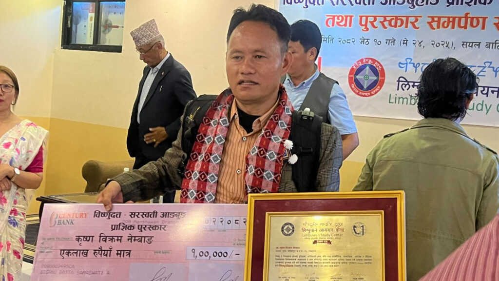 काठमाडौं । यस वर्षको कृष्ण ‘विष्णुदत्त–सरस्वती आङ्बुहाङ प्राज्ञिक पुरस्कार २०८०’ स्वः कृष्णविक्रम नेम्बाङकृत ‘लिम्बू इतिहासः तिब्बती, लेप्चा, कोच, सेन र राय सम्बन्ध’लाई प्रदान गरिएको छ । लिम्बुवान अध्ययन केन्द्रले शनिबार ललितपुरको तिखेदेवलस्थित सयल बाटिकामा एक कार्यक्रमको आयोजना गरी पुरस्कार हस्तान्तरण गरेको हो ।