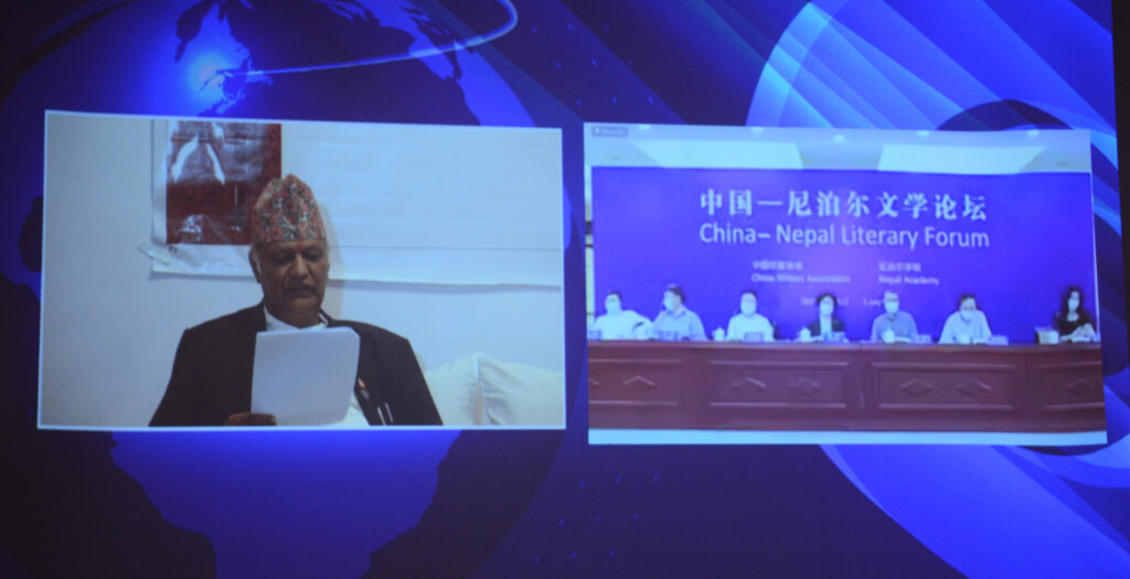 काठमाडौं । नेपाल प्रज्ञा–प्रतिष्ठान र चिनियाँ लेखक सङ्घको संयुक्त आयोजनामा नेपाल–चीन अनलाइन साहित्य सम्मेलन मङ्गलबार सम्पन्न भएको छ । ‘रेसम मार्गमा साहित्यिक कल्पना’ विषयक उक्त सम्मेलनमा नेपाल र चीनका विद्वान् एवम् साहित्यकारहरू अनलाइनका माध्यमबाट सहभागी भएका थिए ।