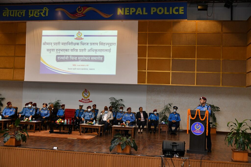 प्रहरी महानिरीक्षक धिरज प्रताप सिंहबाट दर्ज्यानी चिन्ह सुशोभन