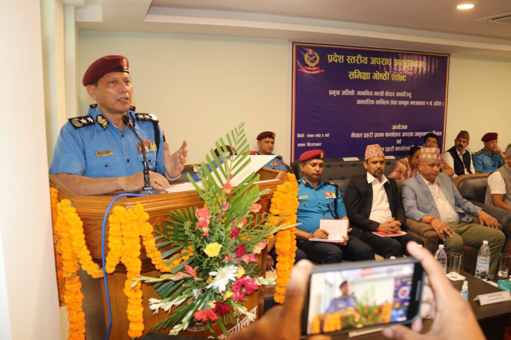 विराटनगर । नेपाल प्रहरी प्रधान कार्यालय अपराध अनुसन्धान विभाग नक्साल एवं १ नम्बर प्रदेश प्रहरी कार्यालय विराटनगरको संयुक्त आयोजनामा संचालन भएको १ दिने “१ नम्बर प्रदेश स्तरिय अपराध अनुसन्धान समिक्षा गोष्ठी–२०७९” को समुद्घाटन भएको छ । १ दिने प्रदेश स्तरिय अपराध अनुसन्धान समिक्षा गोष्ठीको १ नम्बर प्रदेश सरकार आन्तरिक मामिला तथा कानुन मन्त्री माननीय केदार कार्कीले पानसमा बत्ती बालेर विधिवत रुपमा कार्यक्रमको समुद्घाटन गरेका हुन् ।