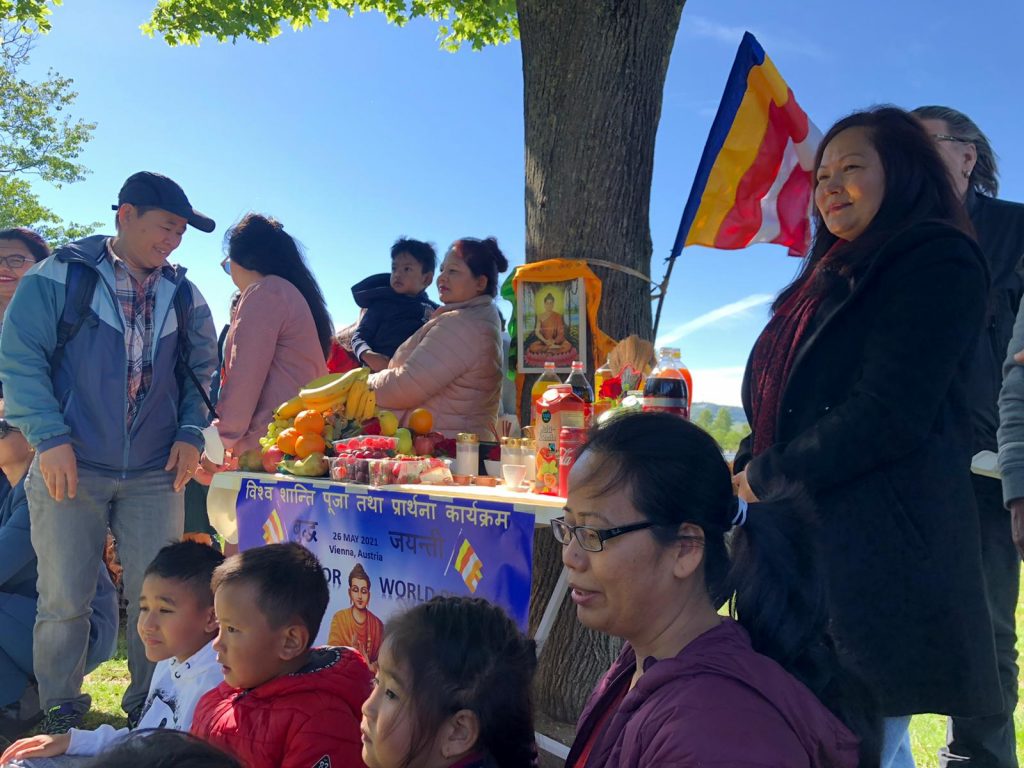विधिवत रुपमा रुख मुनि पूजा तथा प्रार्थना गर्ने थान बनाई शेखर लामा द्वारा लामा मन्त्र पाठ गरिएको थियो। उपस्थित श्रद्धालु भक्तजनहरुले बोधगयामा सिद्धार्थ गौतमलाई एउटा रुख मुनि तपस्याको दौरान बुद्धत्व प्राप्त भएकोले अब उप्रान्त भियनाको उक्त रुखलाई पनि पवित्र स्थलको रुपमा मान्ने साथै बिगत केहि दिनदेखि खराव मौसम रहेको भियनामा बुद्ध जयन्तीको दिन घमाइलो मौसम हुनुलाई भक्तजनहरुले पवित्र दिन भएकोले प्रकृतिले पनि पूजा प्रार्थनामा साथ् दिएको बिश्वास व्यक्त गरेका थिए।
