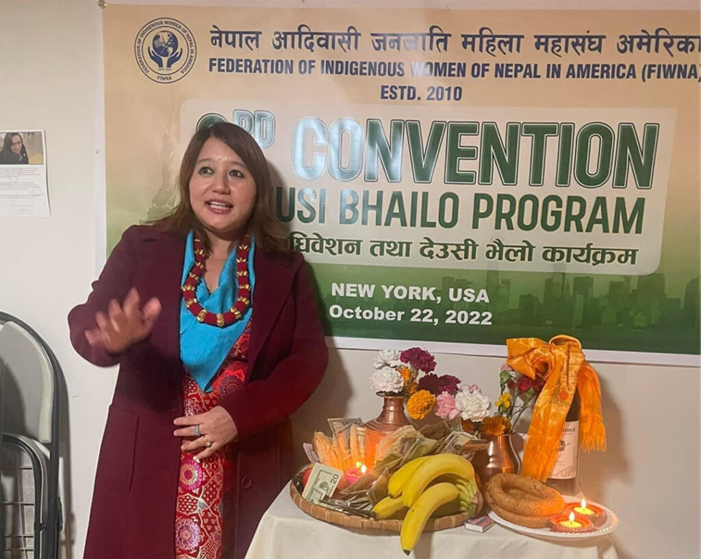 न्यूयोर्क । नेपाल आदिवासी जनजाति महिला संघ अमेरिका (फिवना) को तेस्रो महाधिवेशनबाट इन्दिरा चोङबाङको अध्यक्षतामा १९ सदस्यीय नयाँ कार्यसमितिको गठन भएको छ । संघको उपाध्यक्षमा मैना बज्रचार्य, महासचिवमा इन्दु लामिछाने, सचिवमा निमा गोले, कोषाध्यक्षमा बरमाया पुन, सहकोषाध्यक्षमा शुभद्रा लिम्बु रहेका छन् भने कार्यसमितिमा अन्य १३ सदस्यहरू छन् ।