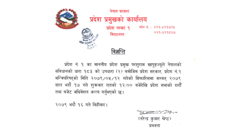 प्रदेश तथा संघको निर्वाचन घोषणा भएको छ । यस घोषणासँगै प्रदेश १ को जनताले पर्ख र हेरको नीति लिएका छन् । अब पहिचानसहितको नामलाई ल्याउने हो या पहिचानरहितको ल्याउने हो, त्यो आगामी निर्वाचनमा जनताले जिताएर पठाएका प्रदेश सदस्यहरुले निर्धारण गर्नेछन् ।